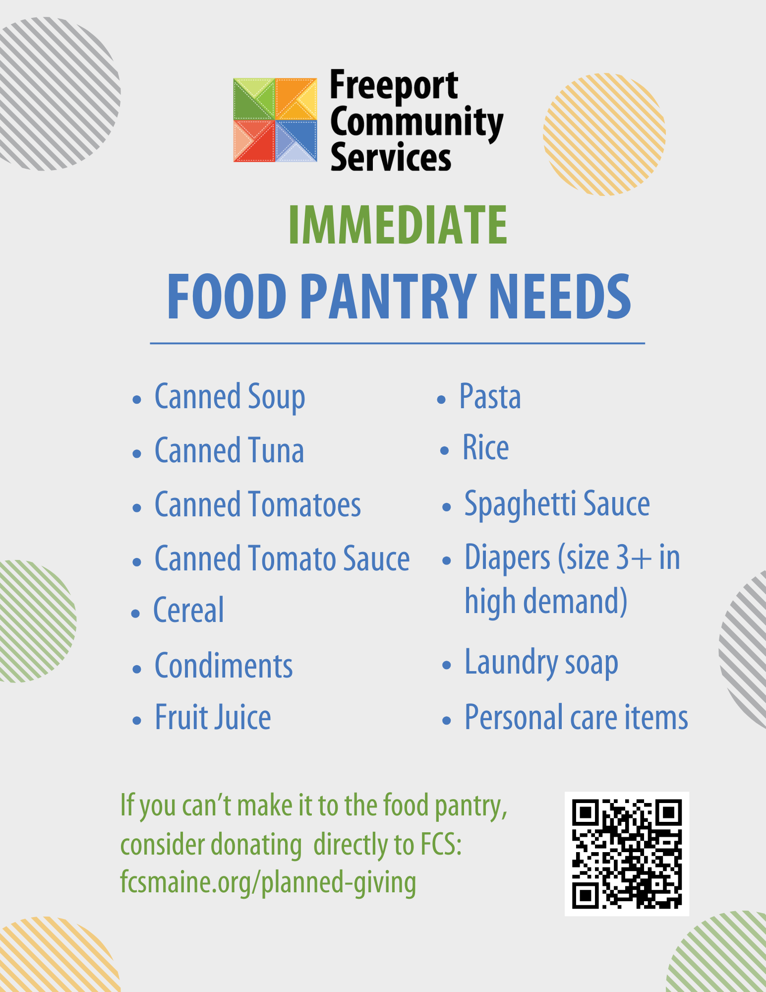 Please help us bridge the gap by donating the items we need.