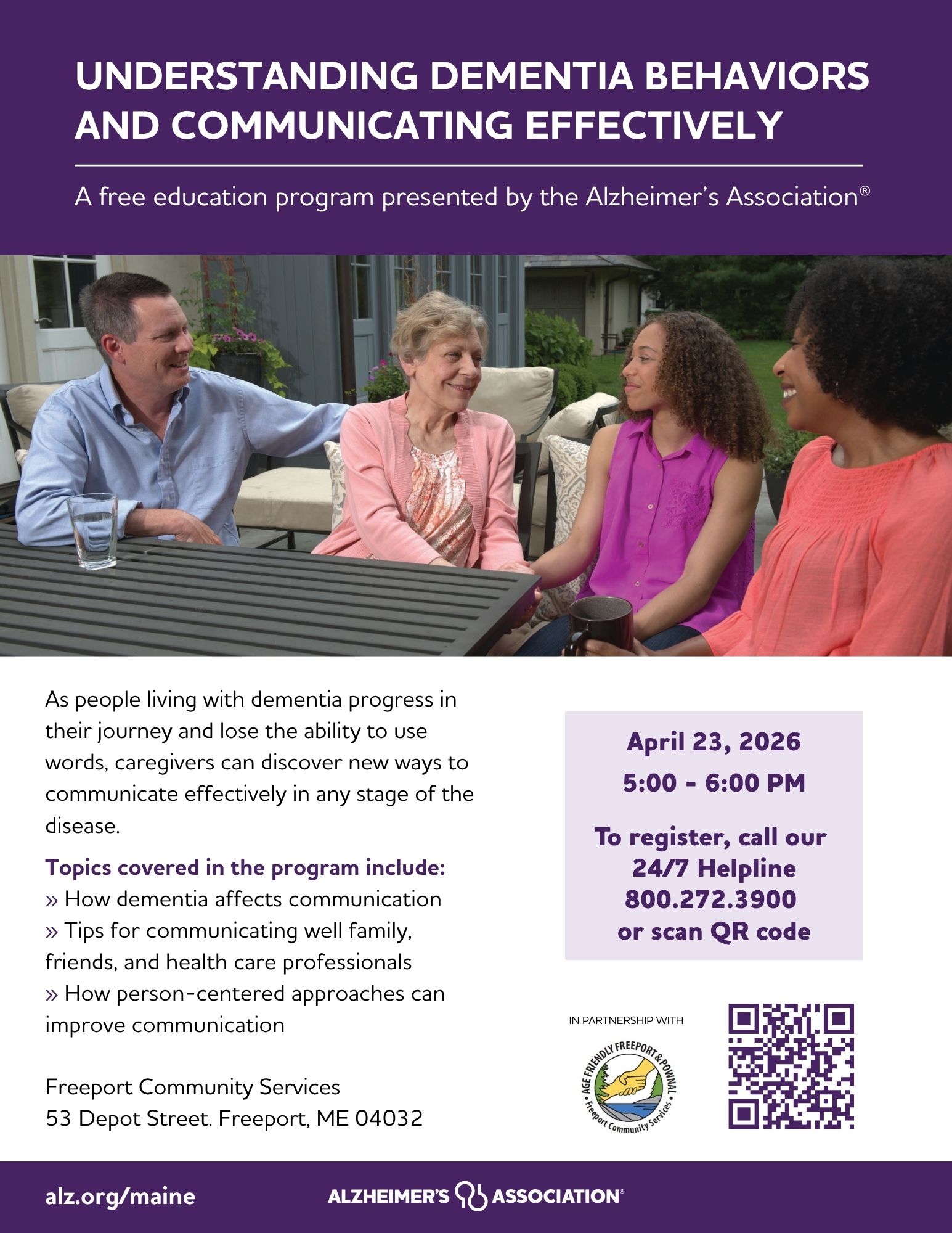 Experts from Maine Alzheimer’s Association will help caregivers and families navigate dementia behaviors and how best to communicate during every stage.